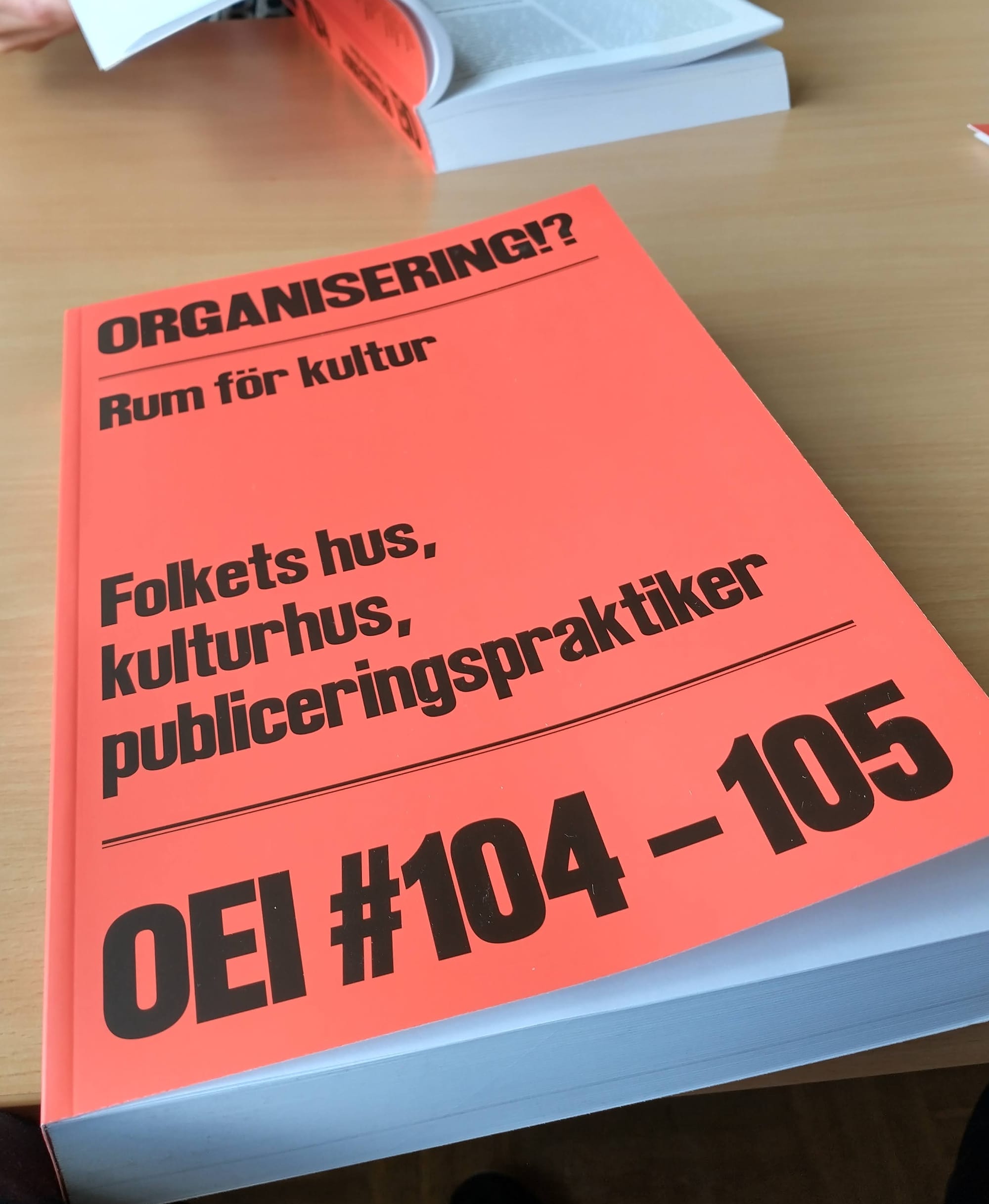 Det är inte alltid som släppet av en 600-sidig tidskrift drar storpublik, särskilt inte i en förort, en tisdag i juni. Men så var fallet härom veckan när OEI släppte sitt nya nummer (#104–105) där två breda teman möts. Dels handlar det om folkets hus-rörelsen och samtida kulturhus (exempelvis Cyklopen) – om arkitekturen, rörelserna, studiecirklarna och annat i bild och text. Dels rymmer numret ett mastigt block om organisering, framför allt (men inte bara) sådan organisering som syftar till den storslagna uppgiften att avskaffa det kapitalistiska produktionssättet. Blocket omfattar följande texter: